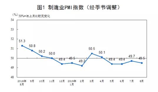 根據(jù)國家統(tǒng)計(jì)局8月31日公布的數(shù)據(jù),8月份制造業(yè)PMI為49.5%,位于臨界點(diǎn)之下,低于上月0.2個(gè)百分點(diǎn)。