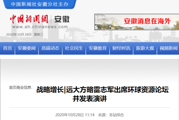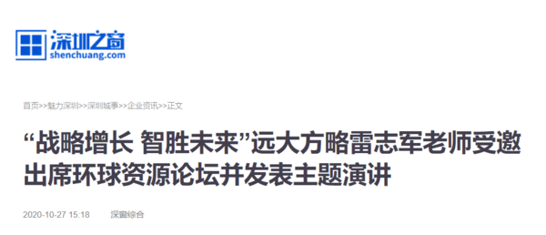 中國新聞網等媒體報道:“戰略增長 智勝未來”遠大方略雷志軍老師受邀出席環球資源論壇并發表主題演講