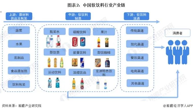 2、產(chǎn)業(yè)鏈剖析:包括原材料供應(yīng)及包裝、軟飲料制造和軟飲料流通環(huán)節(jié)