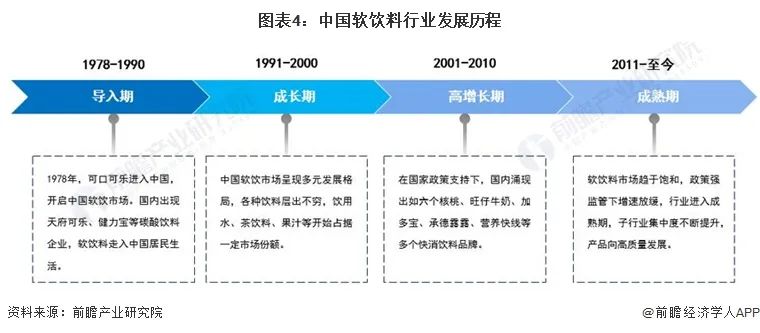 國內(nèi)軟飲料市場起步于1978年可口可樂進入中國,經(jīng)過起步階段、成長階段、高增長期等多個階段,市場規(guī)模不斷擴大、品類不斷擴寬,目前已經(jīng)成為全球最大的軟飲料市場之一。在軟飲料行業(yè)的發(fā)展過程中,本土軟飲料企業(yè),如農(nóng)夫山泉、康師傅、怡寶等不斷壯大,逐漸具備與國際大品牌抗衡的能力,牢牢占據(jù)中國軟飲料市場的核心位置。