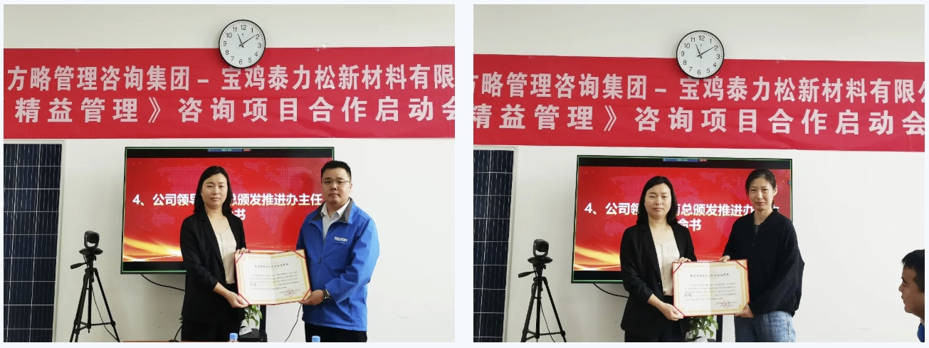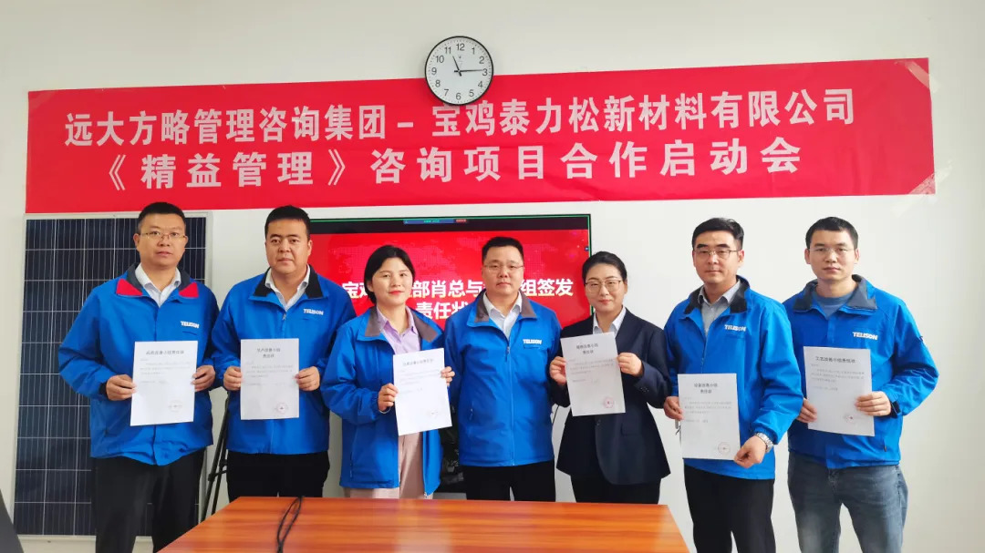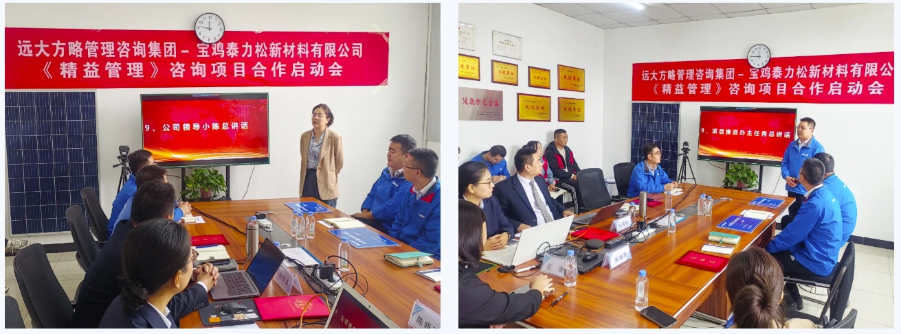 持續改善,邁向卓越。近日,泰力松再次攜手遠大方略開啟管理變革,暨西安泰力松、金壇分公司相繼與遠大方略展開《運營管控與組織能力提升》、《精益管理》咨詢項目合作后,此次寶雞泰力松新材料有限公司(以下簡稱“寶雞泰力松”)攜手遠大方略開啟第三期《精益管理》咨詢項目,幫助企業建立全員精益思維,搭建科學合理的精益管理體系,內部運營實現標準化、規范化、流程化以及制度化,提升整體運營效率,推動企業向高質量發展道路邁進。