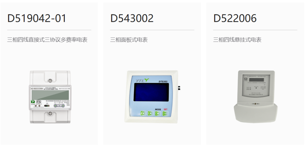 目前公司產品種類已達400多種,電能表功能規格的覆蓋面廣。產品系列從結構上來分,主要有導軌式、分體式、面板式、吊勾式、插座式、傳統式等;覆蓋各類通訊方式,包括RF、IR、RS232、RS485、PLC、ZIGBEE、LoRa、藍牙、以太網、WIFI、NB-IoT、GPRS(2G/4G)/GSM,具備研發、測試和生產單、三相電子式電能表的能力。