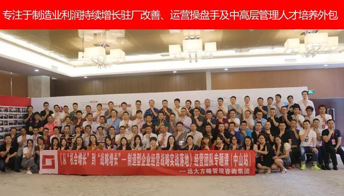 2018年6月29日~6月30日由遠(yuǎn)大方略專業(yè)師資團(tuán)隊(duì)打造的《從“機(jī)會(huì)增長(zhǎng)”到“戰(zhàn)略增長(zhǎng)” ——制造型企業(yè)經(jīng)營(yíng)戰(zhàn)略實(shí)戰(zhàn)落地》課程在中山怡景假日酒店舉行,現(xiàn)場(chǎng)聚集了100+制造業(yè)各大企業(yè)家/CEO,企業(yè)管理者,一起復(fù)盤剖析企業(yè)的戰(zhàn)略部署。